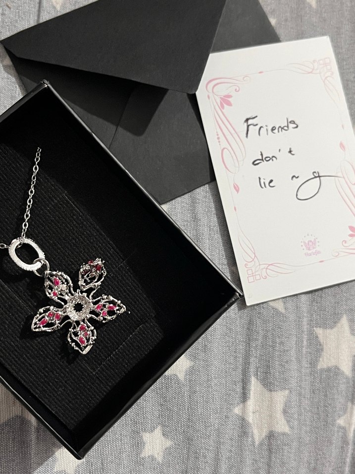 Stranger things demogorgon çelik kolye 2.fotografı ınceleyınız cıcek yapraklarından bırı kırık (Bana kırık gönderildi belkı almak ısteyen olur dıye koyuyorum ve aldıgım fıyatın cok cok altında tutuyorum 3.fotografta gercek fıyatı mevcuttur)