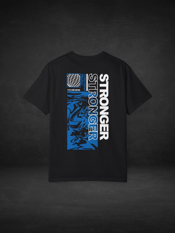 Stronger | Siyah Bisiklet Yaka Baskılı T-Shirt