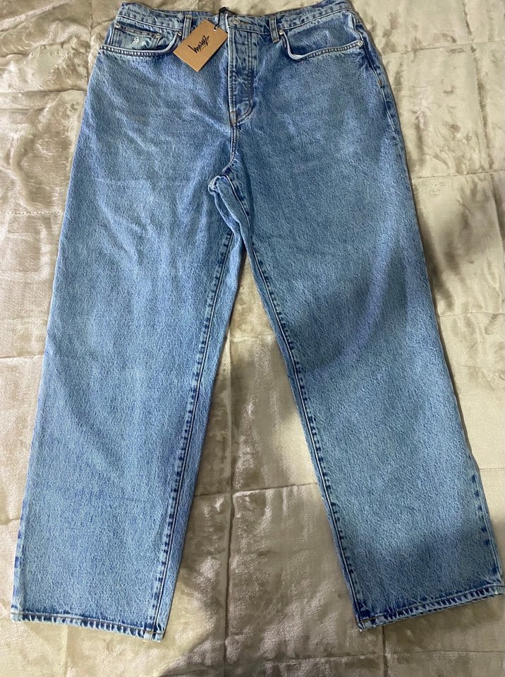 Stüssy Big Ol’ Jean modeli. Baggy/wide fit çok rahat ürünün küçük defoları 5 ve 6. Fotoğrafta belirtilmiştir asla belli olmayan defolardır. 32 beden.