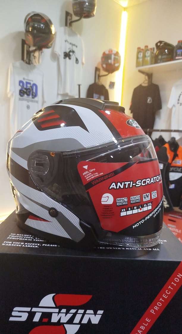 Stwin Kırmızı Gri Baskılı Biker Motosiklet Kaskı L beden