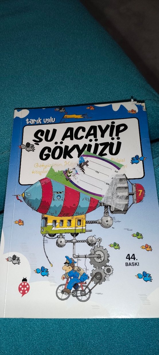 Tarık Uslu'nun 'Şu Acayip Gökyüzü' adlı çocuk kitabı, renkli çizimler ve eğlenceli tasarım içerir. 44. baskıdır.