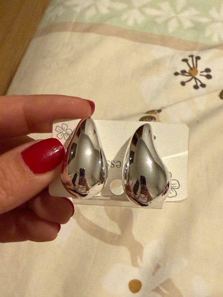 Parlak, parlak gümüş mini küpeler, düz ve desensiz yüzeye sahip, günlük kullanım için çağdaş Paris tarzında. Hiç kullanılmadı