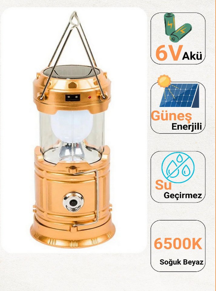 Su Geçirmez Altın Renkli Güneş Enerjili Kamp Lambası