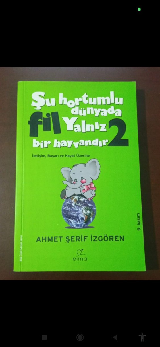 Kitabı temiz kullandım bazı yerlerin altını çizdim. Ahmet Şerif İzgören'in iletişim, başarı ve hayat üzerine yazdığı "Şu Hortumlu Dünyada Yalnız Bir Hayvandır 2" kitabı, yeşil kapak ve fil illüstrasyonu içerir.