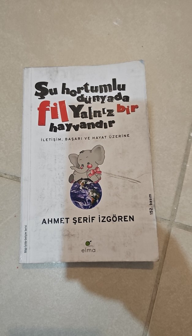Ahmet Şerif İzgören'in iletişim, başarı ve hayat üzerine yazdığı mizah kitabı. Kapakta oyuncak fil resmi bulunur. 175 sayfa eksik yırtık yoktur