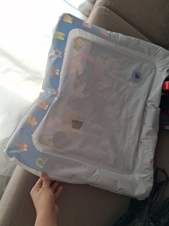 plastik malzemeden üretilmiştir. Renkli hayvan desenleri ve şeffaf file bölümü ile birlikte şişirme valfi bulunur. su matı 2kere 3kere kullandm ama temizlenmesi gerekli kilerde duruyordu bebekler için