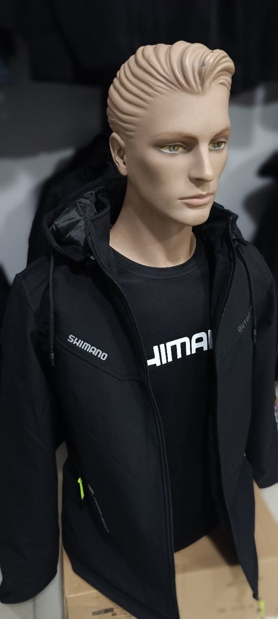 Fermuarlı, uzun kollu, siyah kayak ceketi. Sentetik kumaştan, baskılı ve SHIMANO logosu ile trendy casual tarzda.