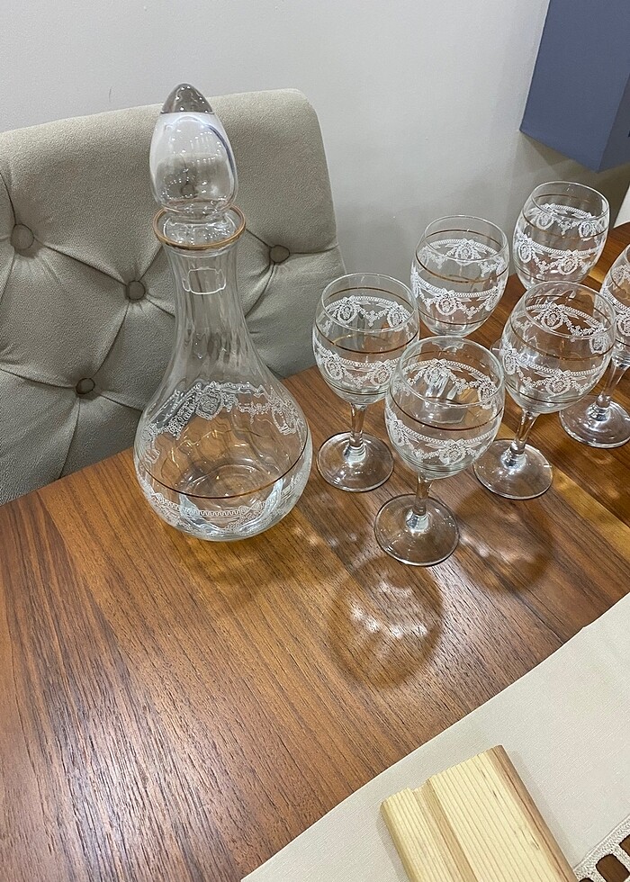 Yaldızlı su takımı 6 adet kadeh 1 adet sürahisi mevcut hiç kullanılmamış