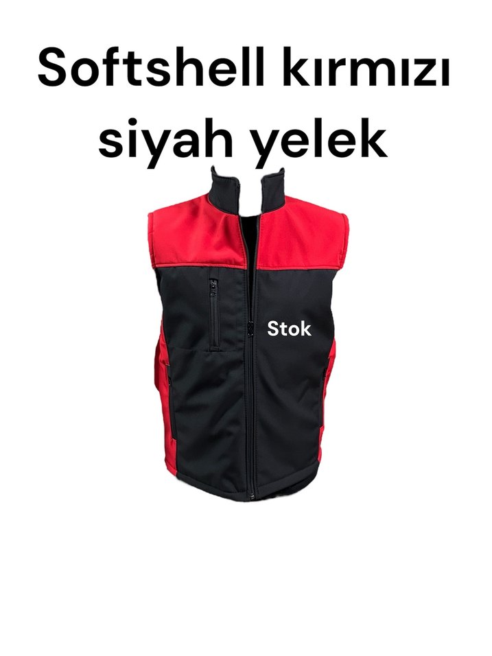 Su ve Rüzgar Geçirmez Kırmızı Siyah Softshell Yelek