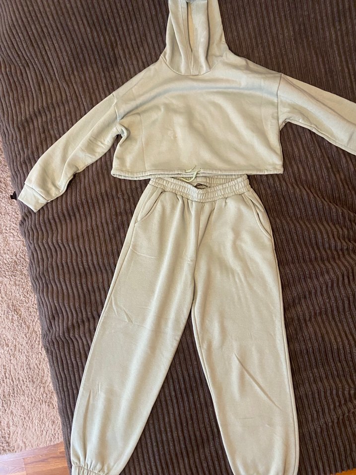 Su Yeşil Kapüşonlu Bol Kesim Eşofman Takımı