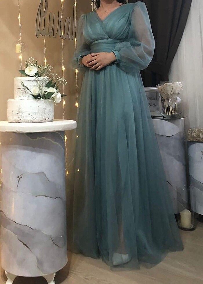 Su yeşili abiye