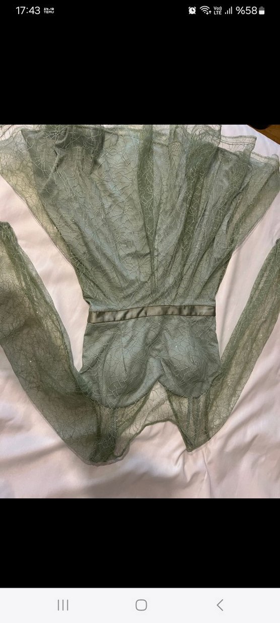 su yesili alti astarı askili ustu gupurlu bitişik abiye
