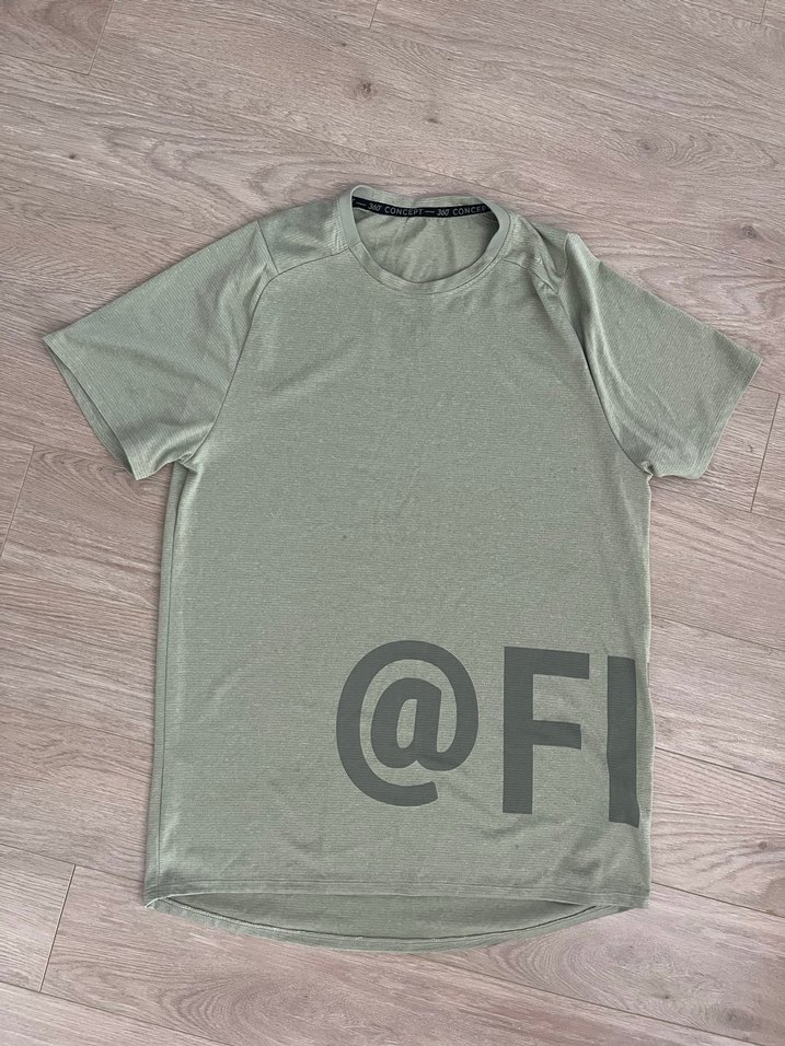 Su yeşili renkli Kadın tişört, kısa kollu ve yuvarlak yaka. Rahat kesimi ve sentetik yumuşak kumaşıyla günlük kullanıma uygun, baskılı '@F' deseni bulunur.