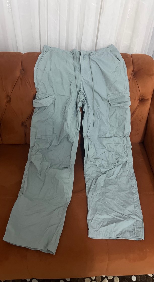 Su yeşili keten kumaştan, belden kemerli, bol kesim ve midi boy kadın pantolon. Rahat ve günlük dış mekan kullanımı için uygundur.