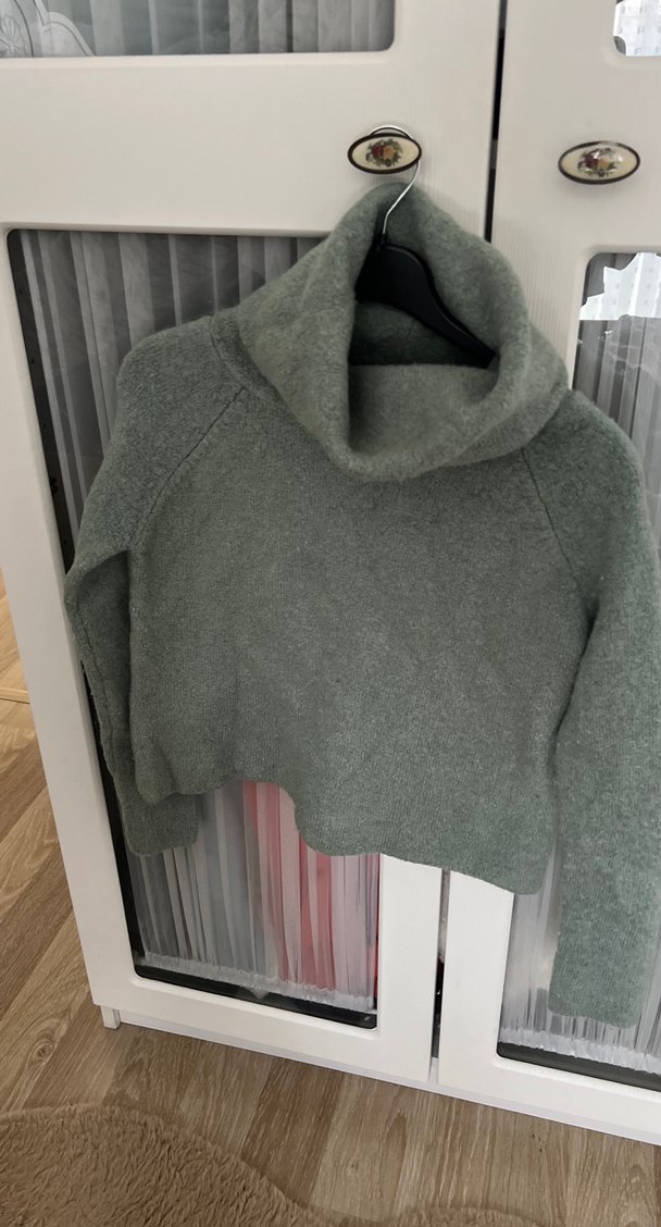 Su yeşili renkte, boğazlı ve uzun kollu, yumuşak ve sıcak dokulu triko kazak. Rahat kesimiyle günlük kullanıma uygundur.