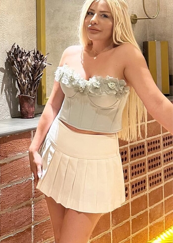 Su yeşili çiçekli korse büstiyer