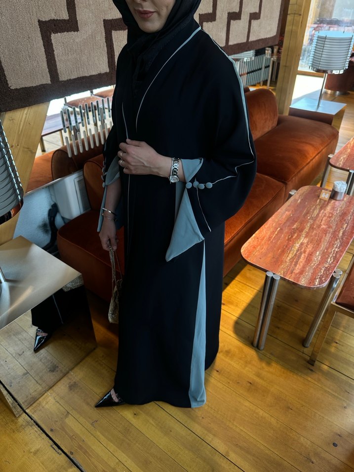 Su yeşili düğmeli abaya