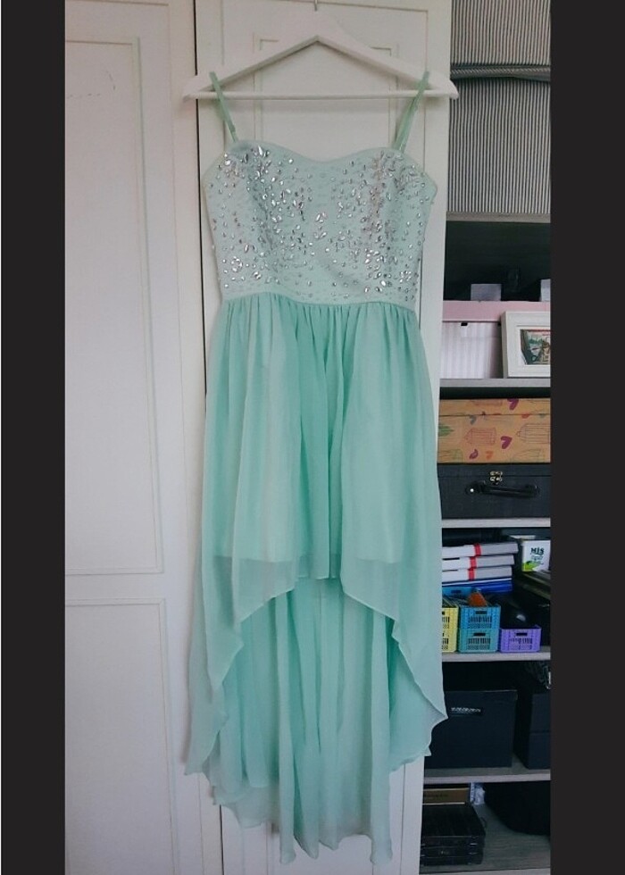 Abiye elbise, ön kısmı kısa arka kısmı uzun