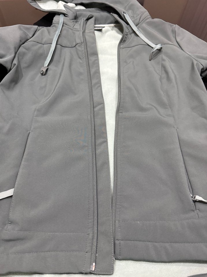 fermuarlı önü ve kesimli yakası olan ceketi. Uzun kollu, midi boy ve sentetik kumaştan, günlük sokak stili için uygun.