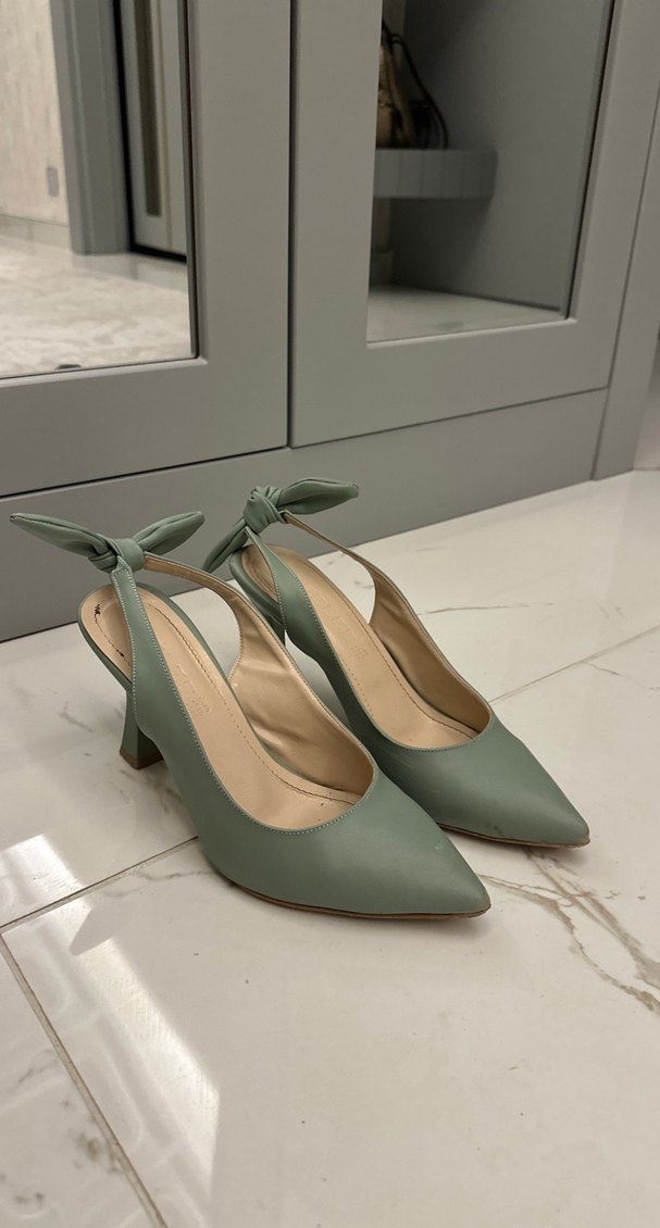 Su Yeşili Fiyonklu Bej Stiletto Kadın Topuklu Ayakkabı