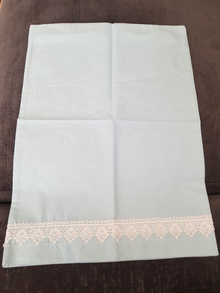 Su yeşili renkte, kenarında zarif nakışlı desen bulunan Bebek yastık kılıfı. Pastel tonuyla odanıza şık ve sade bir dokunuş katar. ️