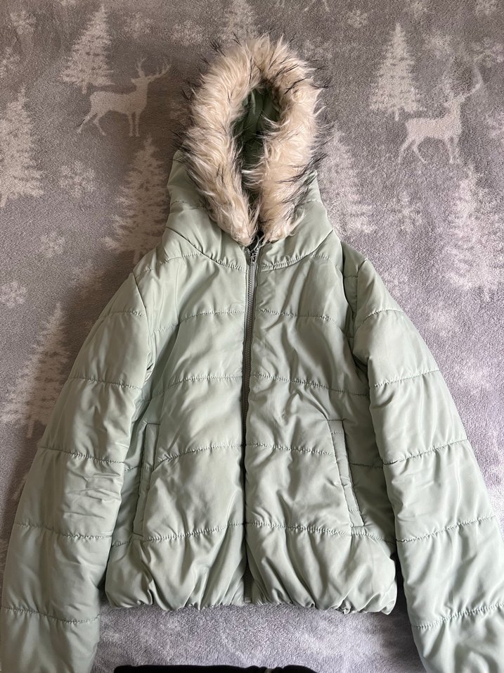 su yeşili Kapüşonlu Kadın Kışlık Mont