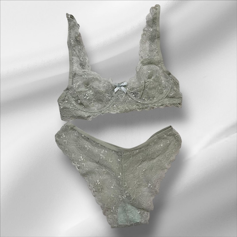 su yeşili nakışlı, bohem tarzda vintage sütyen ve külot takımı, ince dantel kumaştan üretilmiştir. bedenler:80-85-90
