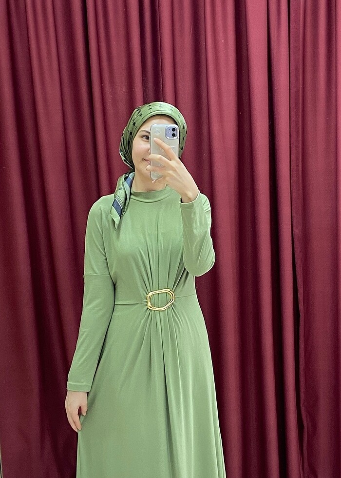Su yeşili penye elbise