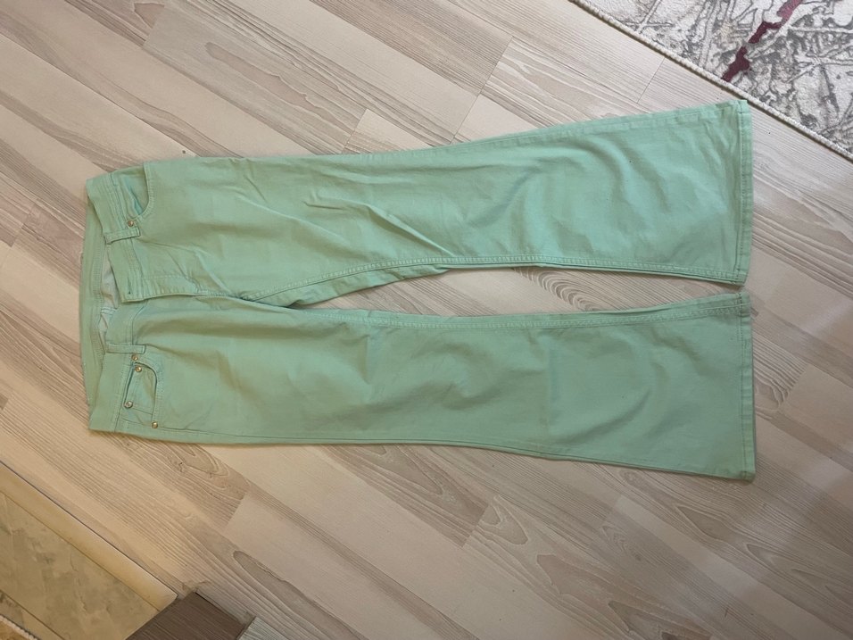 Çyeşil renkte, keten kumaştan üretilmiş, rahat kesim ve midi boy kadın pantolon. Düz tasarımıyla günlük ve outdoor kullanıma uygundur.