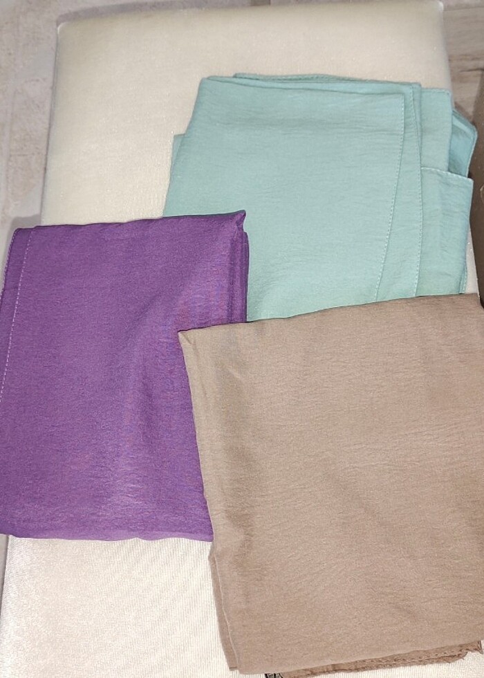 Şu yeşili,sütlü kahve ve mor renkli üç adet şal isteyene tekli
