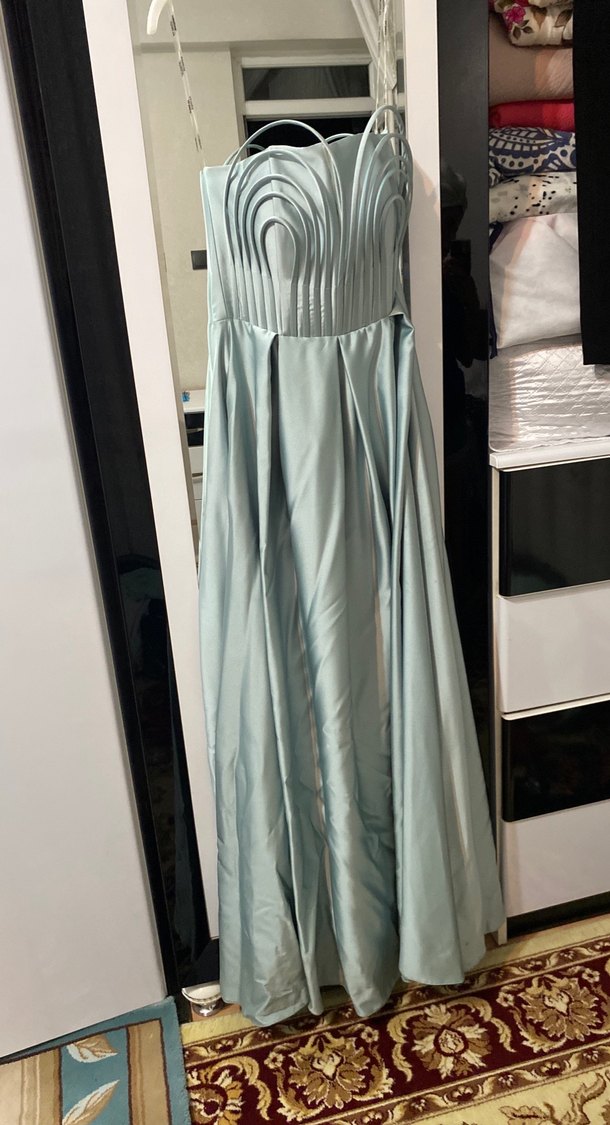 Su yeşili Straplez Uzun Pilili Kadın Abiye Elbise