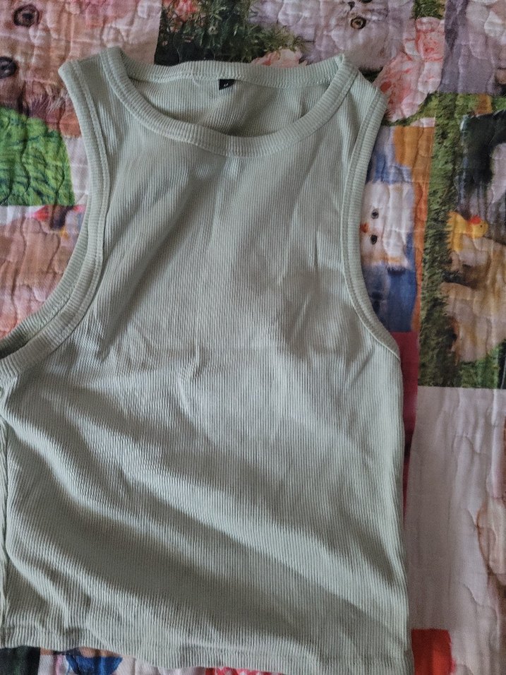Su yeşili renkte, yüksek yakalı ve kolsuz kadın atlet. Yumuşak sentetik kumaştan, sade ve şık tasarımıyla günlük rahatlık ve sokak stiline uygun.