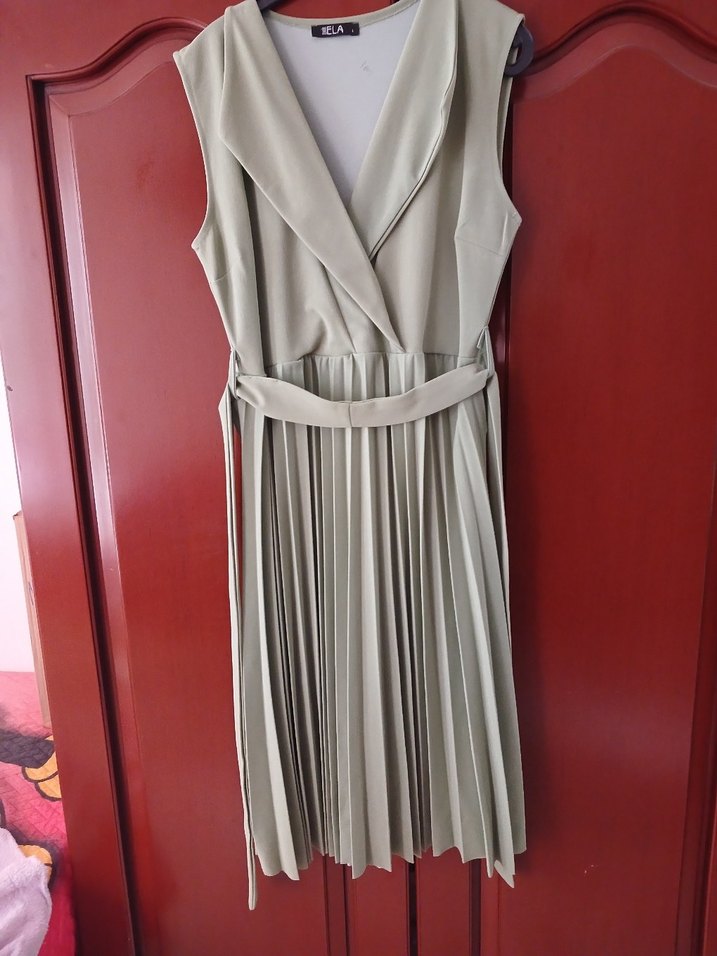 su yeşilj Pileli midi boy Kolsuz Kadın Elbise