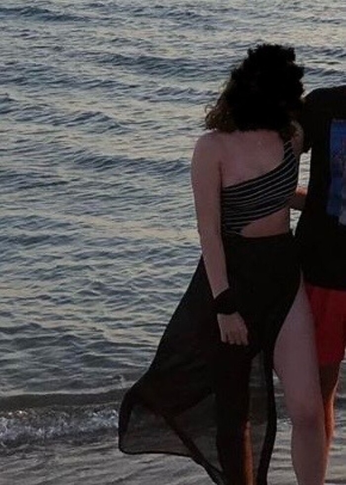 Subdued marka çizgili tek omuzlu mayokini