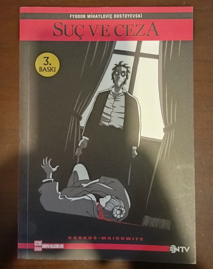 Fyodor Dostoyevski'nin 'Suç ve Ceza' adlı romanı Kapağında dramatik ışıklandırmayla çizilmiş bir sahne yer alıyor.