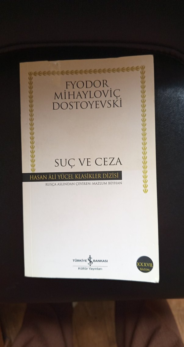 Fyodor Mihayloviç Dostoyevski'nin "Suç ve Ceza" kitabı, Rusçadan Mazlum Beyhan tarafından çevrilmiştir. Hasan Ali Yücel Klasikler Dizisi'nden.