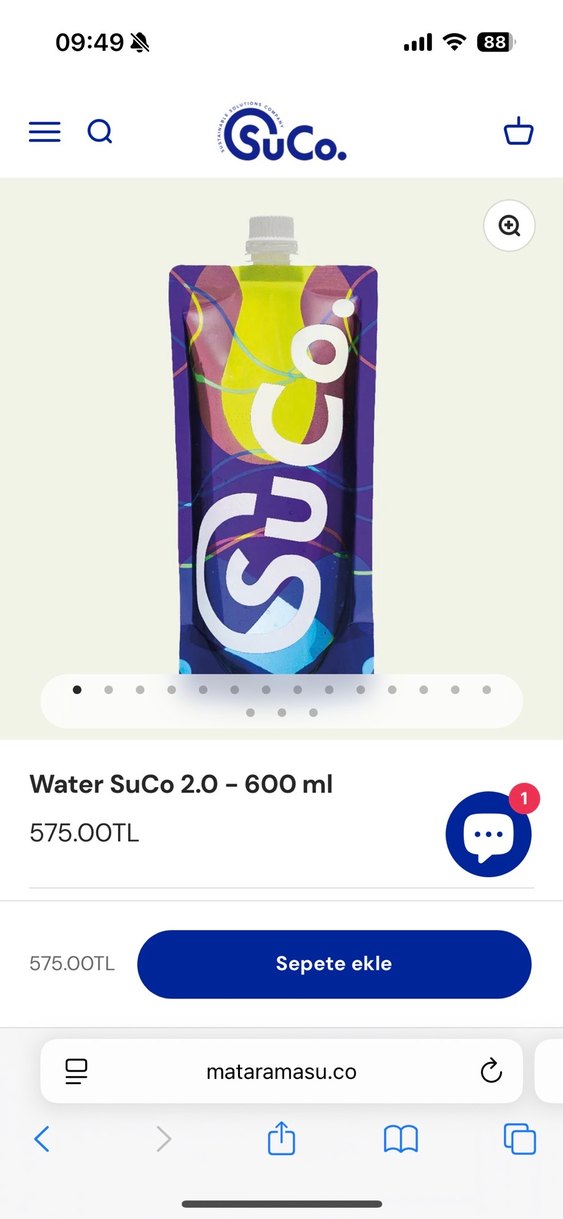 SuCo 2.0, 600 ml kapasiteye sahip, canlı mavi ve renkli tasarıma sahip su matarasıdır
