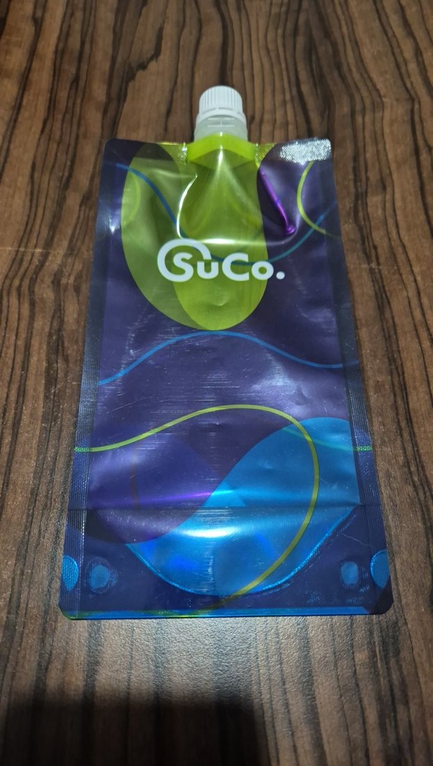 Mavi renkte, vidalı kapaklı esnek su paketi, hareket halindeyken kolay kullanım sağlar. Hiç kullanılmadı