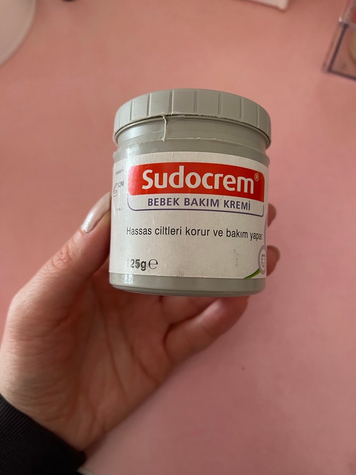 Sudocrem hassas ciltleri korur ve bakım yapar. Yüze kullanılabilir. Fotoğrafta göründüğü kadarı kullanılmıştır.