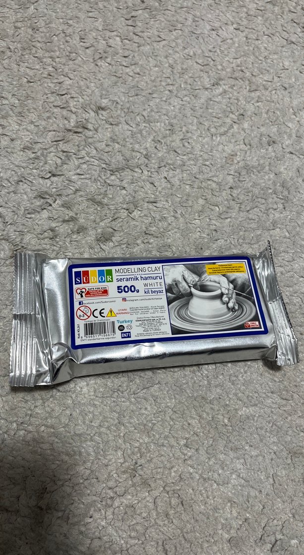 500 gram ağırlığında, beyaz renkte Südor seramik hamuru, seramik sanatları için uygundur.