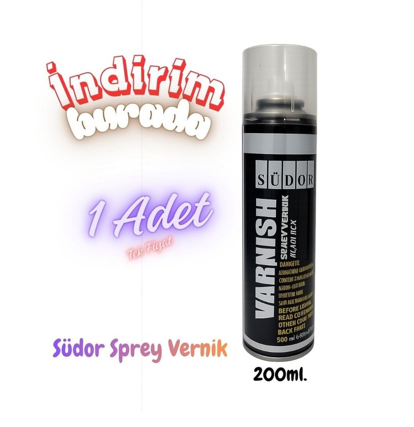 ✨Südor Vernik Sprey – Şeffaf & Güçlü Koruma Akrilik, yağlı boya, ahşap ve hobi çalışmalarınız için ideal! Yüzeyde iz bırakmadan eşit yayılır, eserinizi dış etkenlere karşı korur ve profesyonel bir görünüm kazandırır. Hızlı kurur, sararma yapmaz. 1 Adet/200 ml, Pratik kullanım, net sonuç...