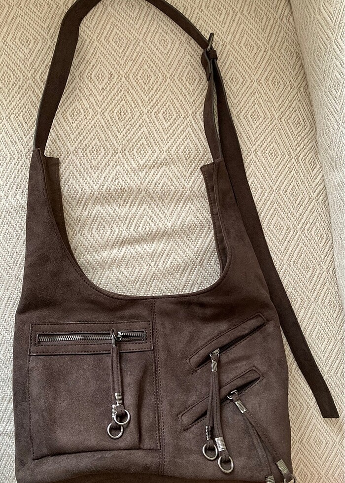 1.kalite sıfır ayarlanabilir askılı süet malzeme omuz çantası ve çaprazda kullanılabilir. Ön tarafda 3 adet fermuarlı cepler mevcut, çantanın ağzı çıtçıtla kapanıyor. Ebat 32*22 taban 15 cm.