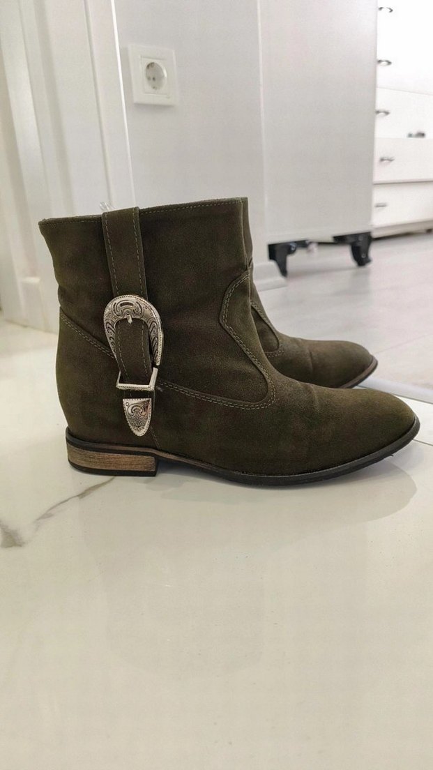Kahverengi süet, tokalı ve kadın bot, kama topuklu ve günlük kullanıma uygun bohem tarzda.ürün çok az kullanıldı hiç bir kusuru yok yeni bot aldığım için satıyorum.