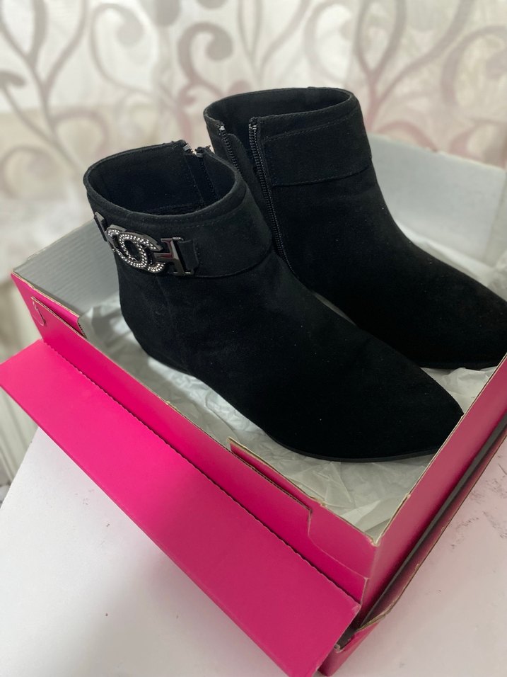 Siyah süet malzemeden, dolgu topuklu ve tokalı, günlük kullanıma uygun rahat ve tarz goth kadın botları. Süet bot kutulu sıfır ürün çok şık 37 numara hafif topluklu duruşu çok güzel