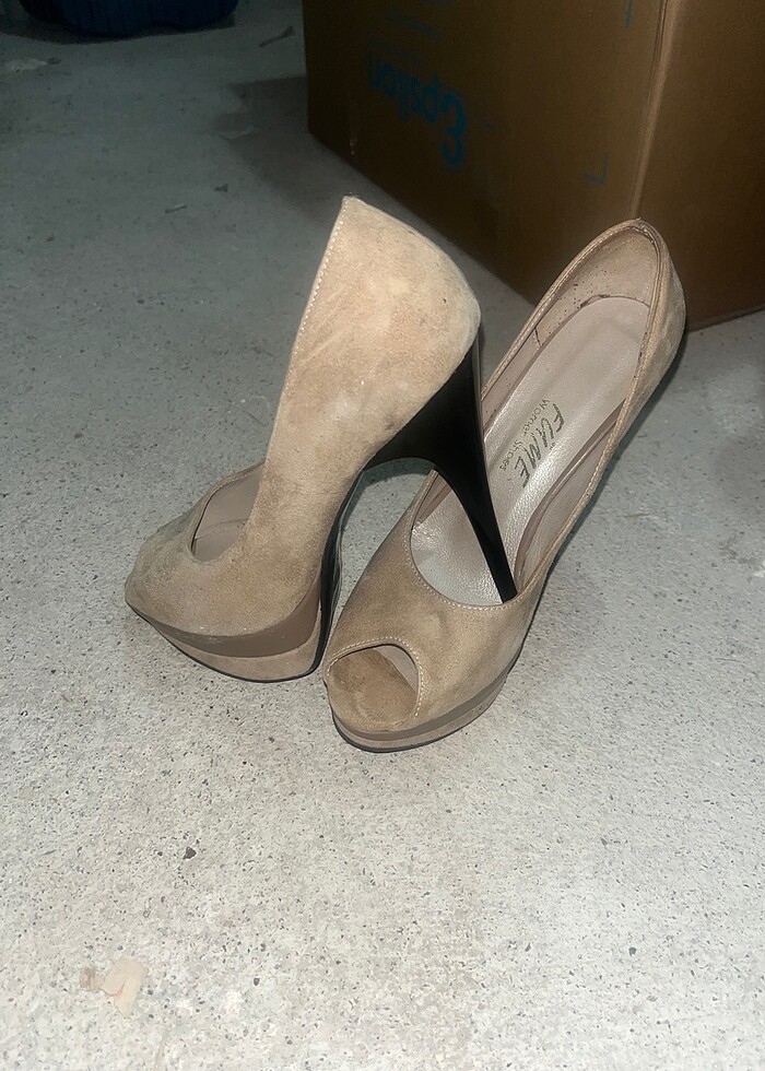 Süet burnu açık platform ayakkabı