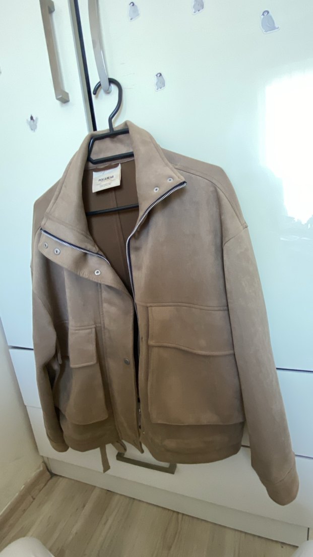 Bej renkte süet kumaştan yapılmış, normal uzunlukta ve fermuarlı kadın ceketi. Uzun kollu, regular fit ve notched lapel yakaya sahiptir. Günlük kullanıma uygun rahat bir modeldir.