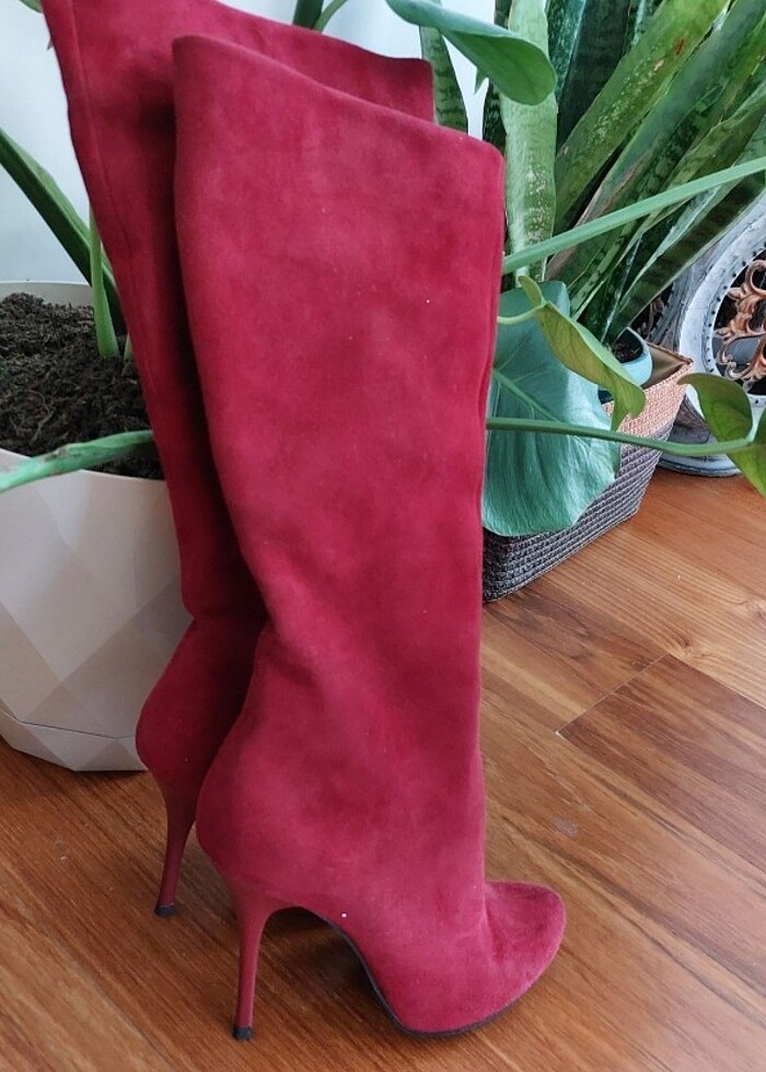 Gerçek süet kirmizi cizme 2 kez kullanılmıştır.