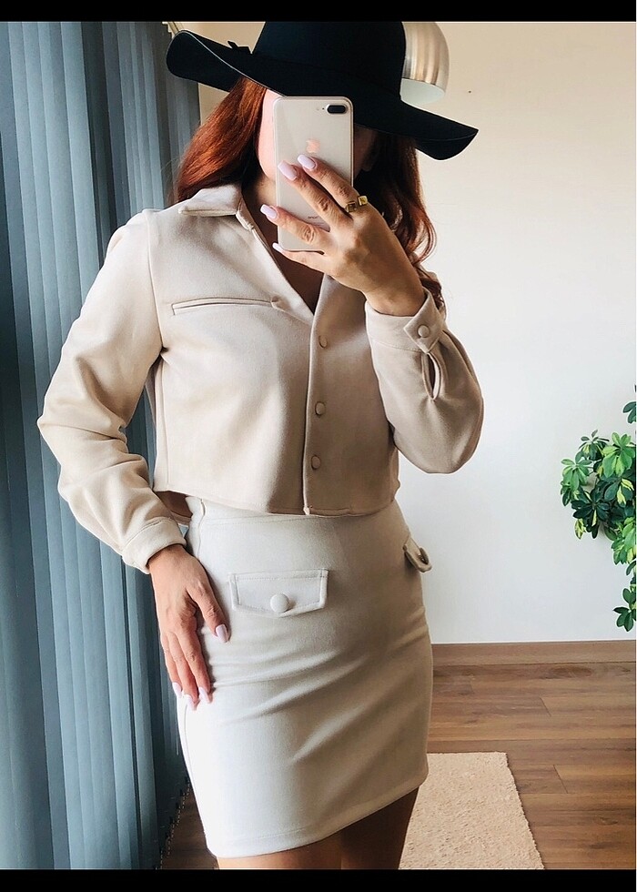 BÜTÜN BEDENLER MEVCUT SÜET crop gömlek Eteği ile birlikte takım olarak da alabilirsiniz S-M-L bedenler
