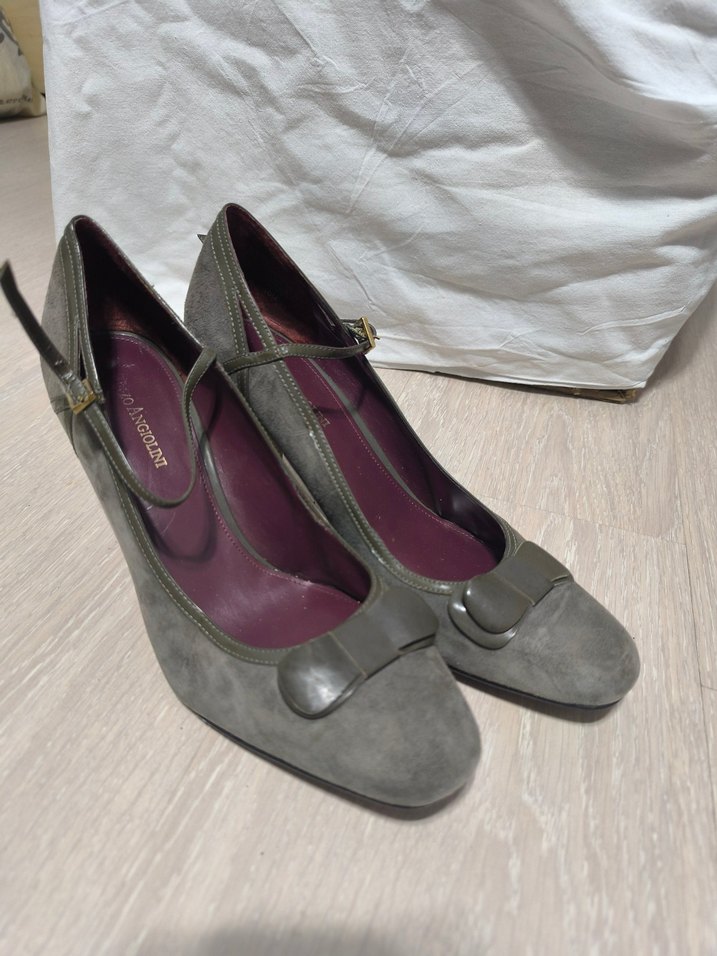 süet deri gri topuklu ayakkabı