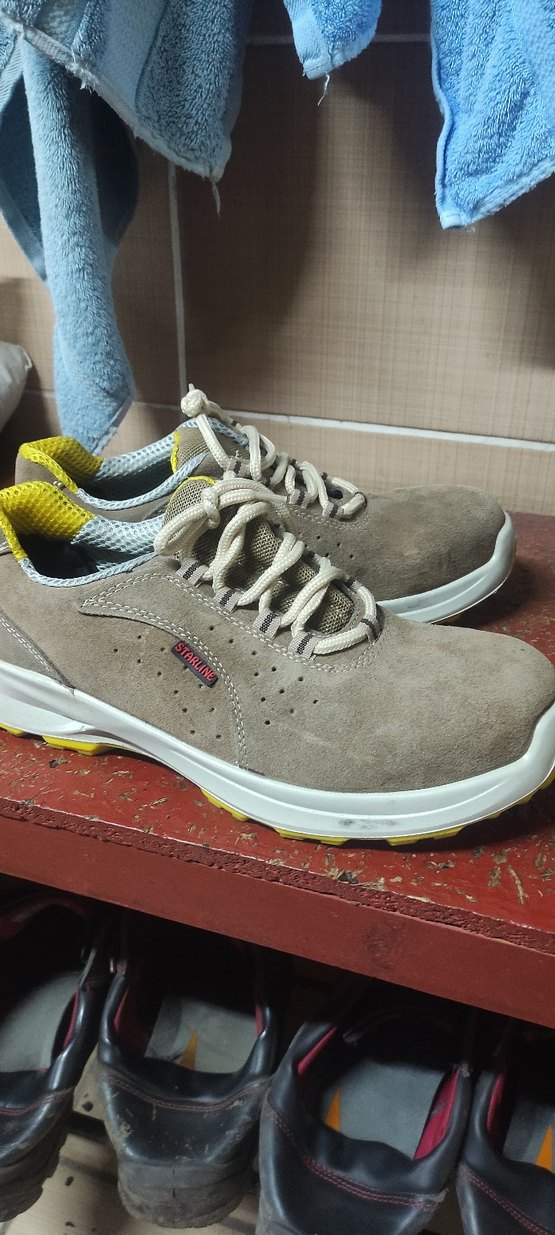 Bu erkek spor görünümlü Çelik burun iş ayakkabıları kahverengi süet malzemeden yapılmıştır. Gri ve sarı detaylara sahip, bağcıklı ve rahat tabanlıdır. Spor sokak stili için uygundur. ♂️